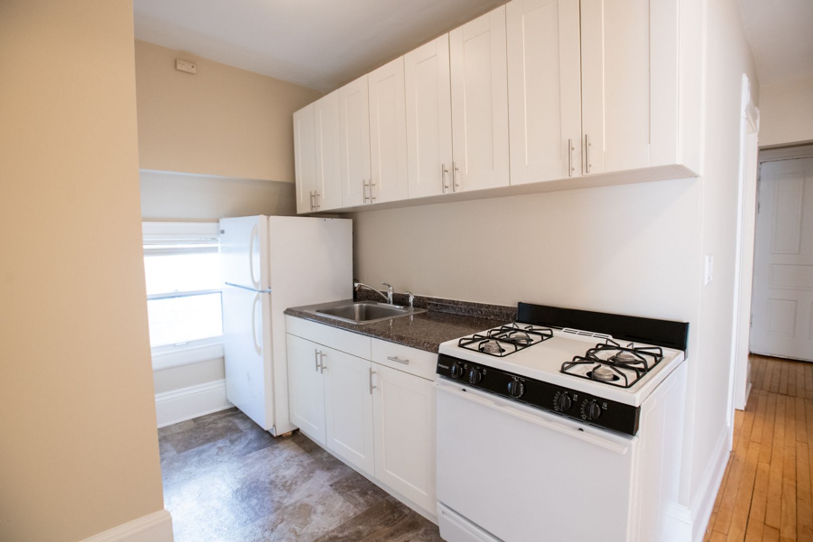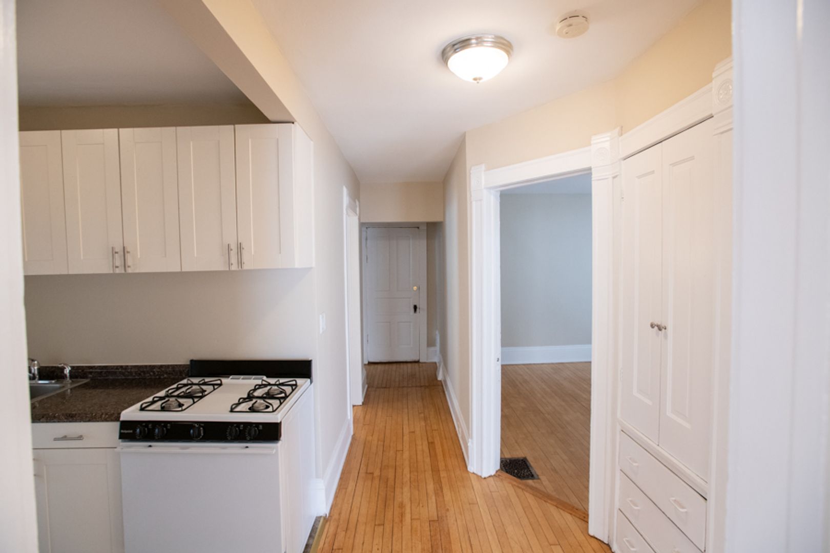 This sunny 2-bedroom upper flat has a private entrance, re-finished hardwood floors, large bedrooms and living room, and a recently renovated kitchen. Unit is located a few blocks south of UWM. Rent includes one off-street parking spot. We will accept up to two cats with an additional fee.